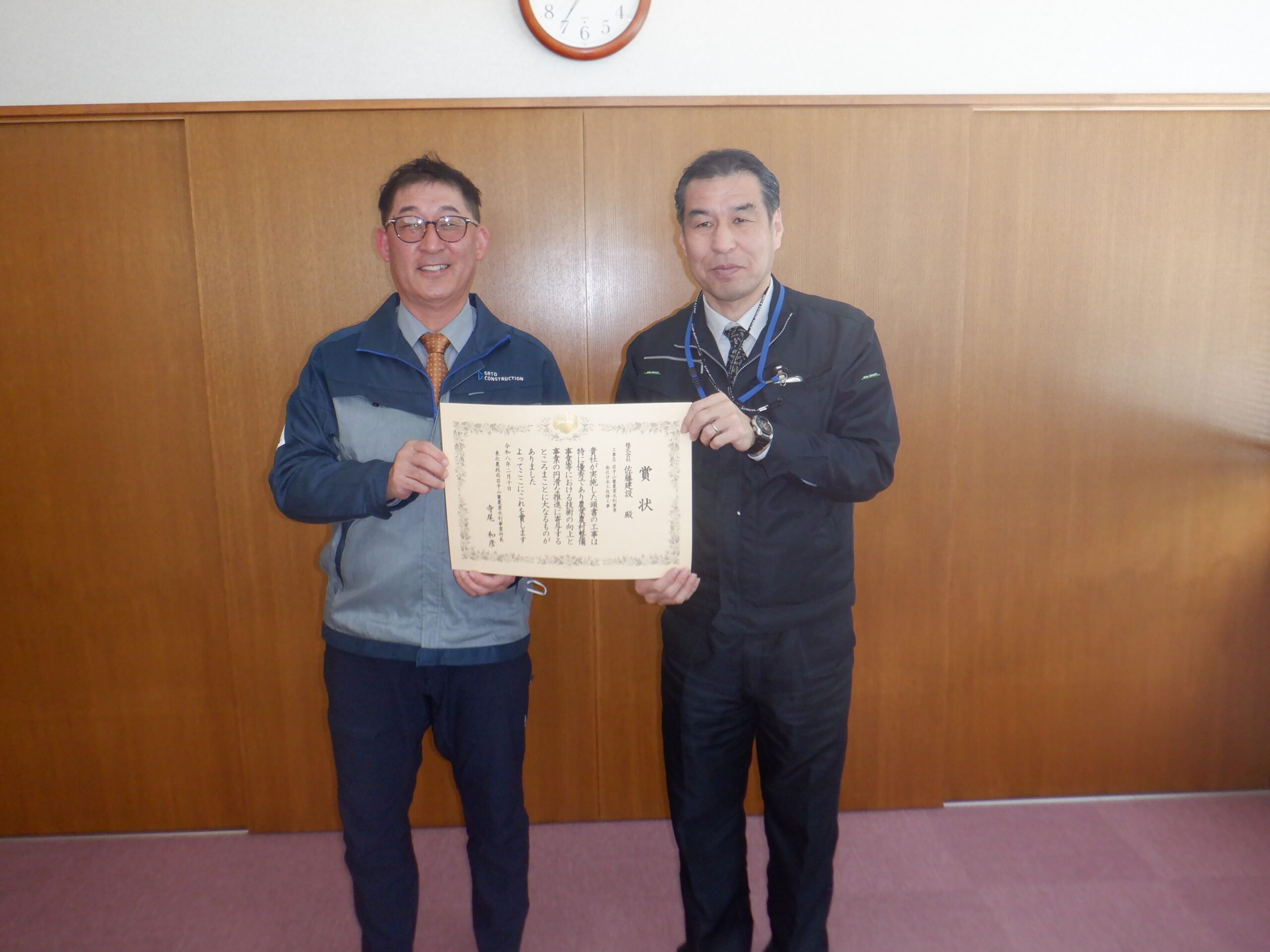 岩手山麓農業水利事業 南北分水工改修工事が表彰されました 投稿日: 2026年2月12日2026年2月16日 投稿者: 佐藤建設 岩手山麓農業水利事業 南北分水工改修工事が表彰され、東北農政局岩手山麓農業水利事業所長より賞状をいただきました。 関係者の皆様、ご協力ありがとうございました。 今後も安心・安全に作業をしていきたいと思います。 どうぞよろしくお願いいたします。