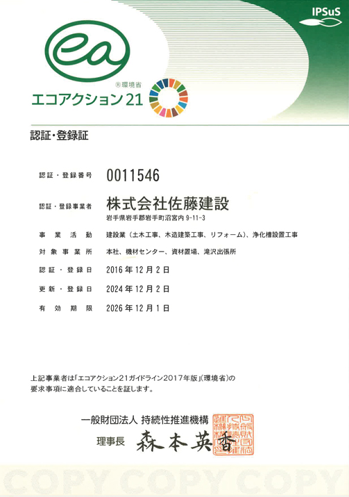 エネルギーの削減に取り組んでいます。岩手県許可(特-4)第3182号