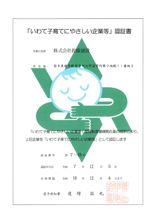 - ワークライフバランスに取り組み岩手町内に於いて次世代の為に雇用の場を提供しています。